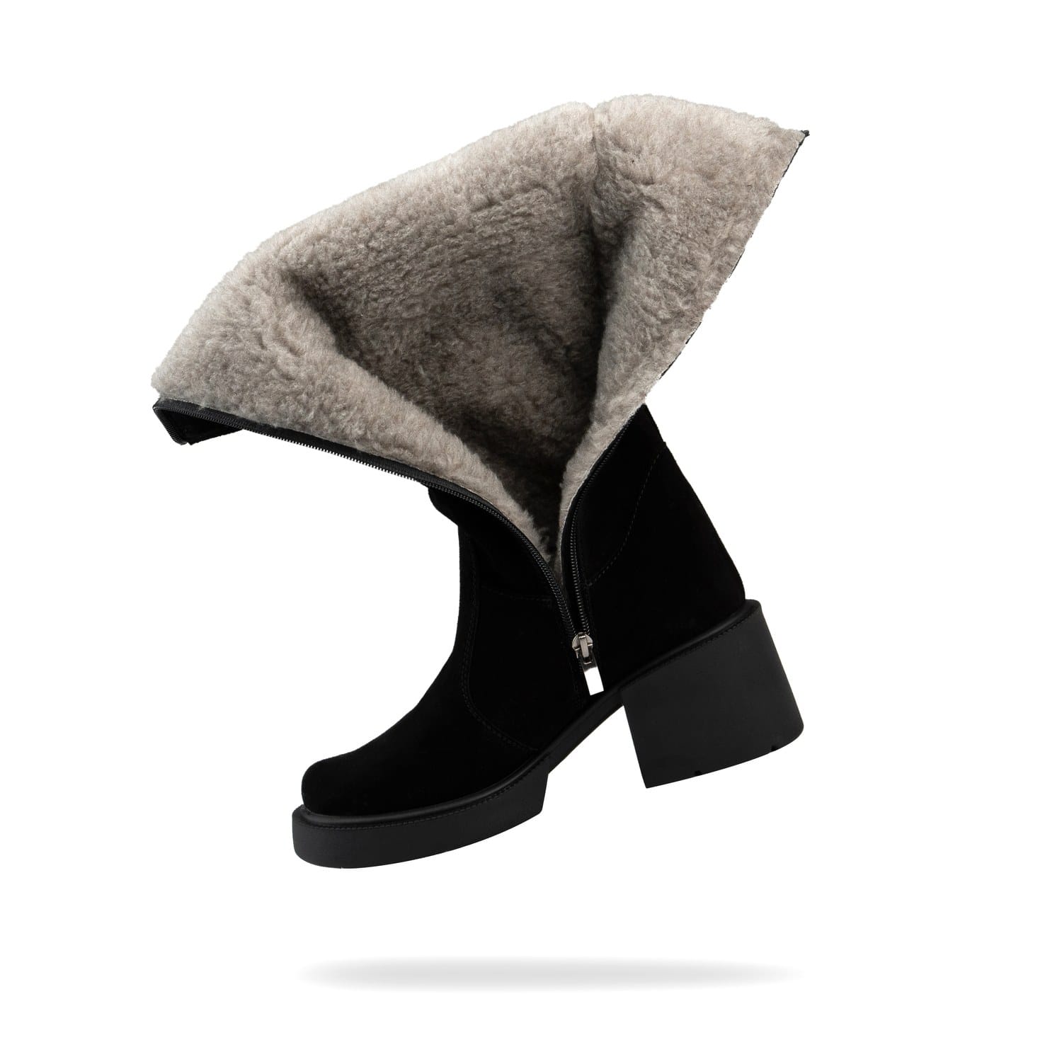 Жіночний силует, комфортна висота й тепла підкладка роблять цю модель ідеальною для зимових образів — від щоденних до вечірніх. Доступні у варіантах із гладкої шкіри або замші, Вега — це універсальний чорний у розкішному виконанні.